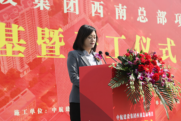新都区副区长彭茚对西南总部开工表示热烈祝贺。她表示项目开工是双方合作共赢的良好开端,期待在更宽领域、更深层次开展合作,共谋新发展、共创新辉煌!新都区将一如既往地为项目建设和企业发展营造优越环境、提供周到服务,力争把华体会在线西南总部建设成为航空产业总部经济的标杆!