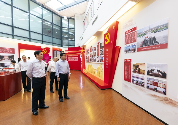 张董事长一行首先参观了集团公司展厅,全面了解了集团公司发展历程、产业项目成果、企业文化、发展规划以及党建工作。